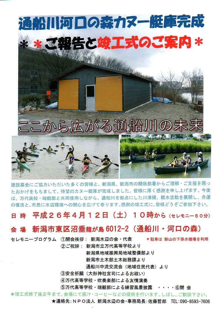 4/12(土)カヌー艇庫完成のご報告と竣工式のご案内